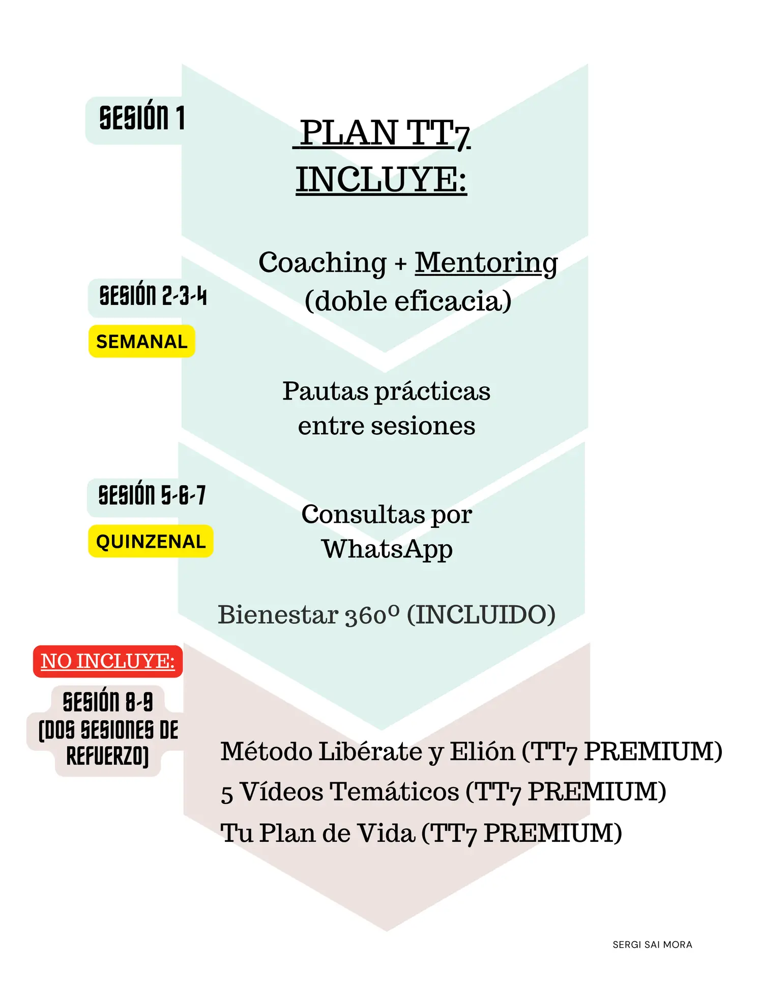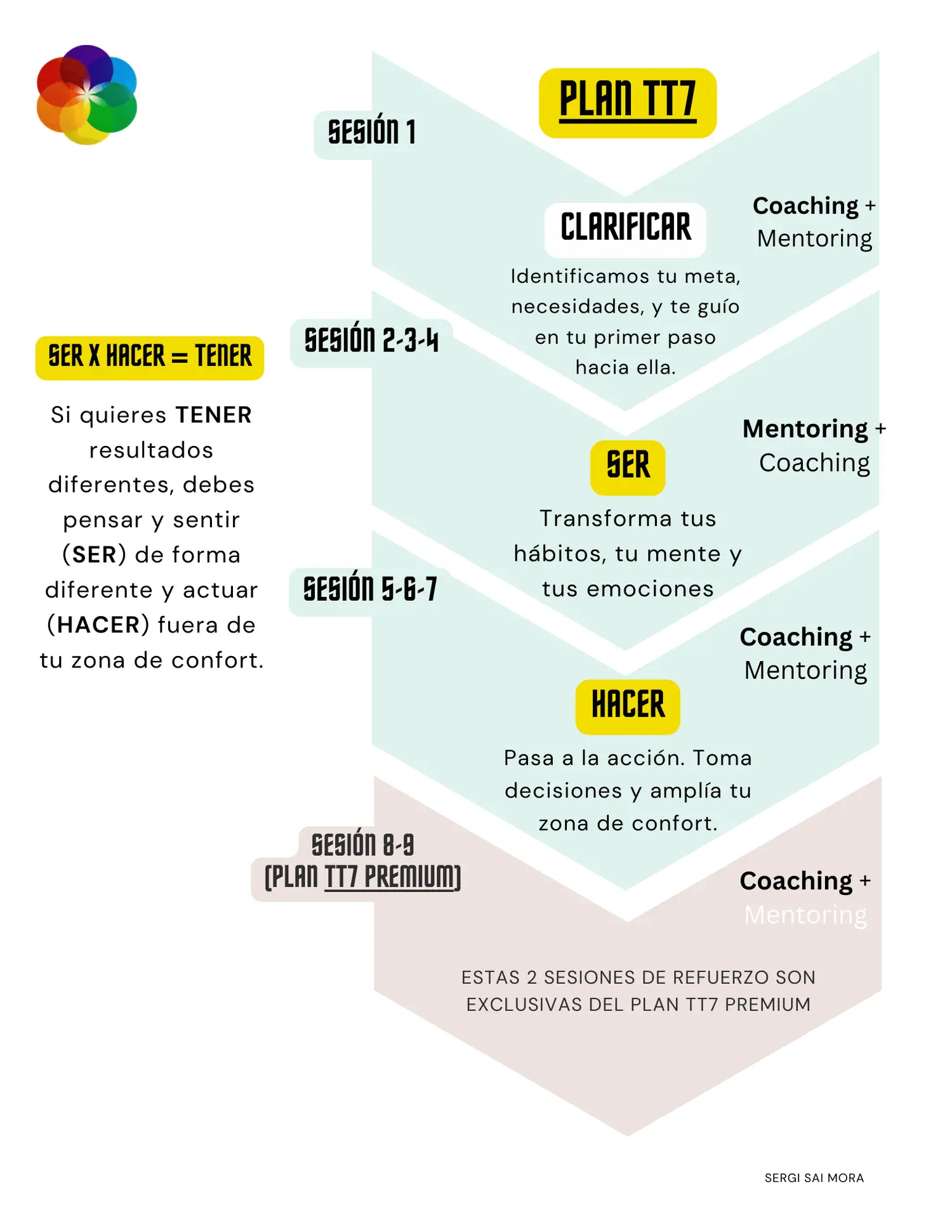 Si después de completar con éxito el Plan TT7 sientes que necesitas alguna sesión puntual, tienes acceso a tarifas especiales. Sin embargo, el objetivo del proceso es que al finalizar cuentes con todo lo necesario para seguir creciendo por ti mismo.