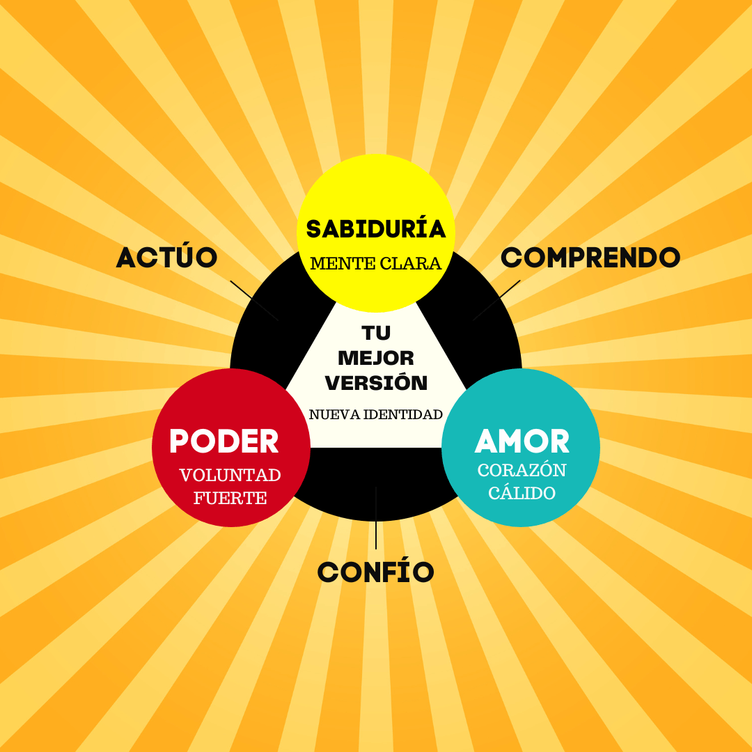 Amor (confianza), Sabiduría (claridad) y Poder (fuerza de voluntad)